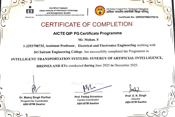The Department of EEE had bagged the Best Industry linked institution award in the prestigious AICTE-CII Survey of Industry-linked technical institutions 2018. The award is based on a survey done across AICTE approved technical institutions of the country with the objective to showcase the best practices